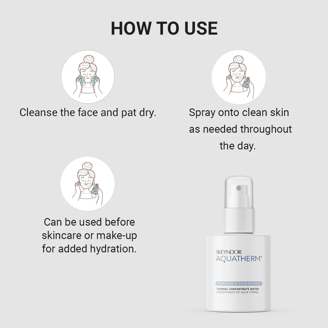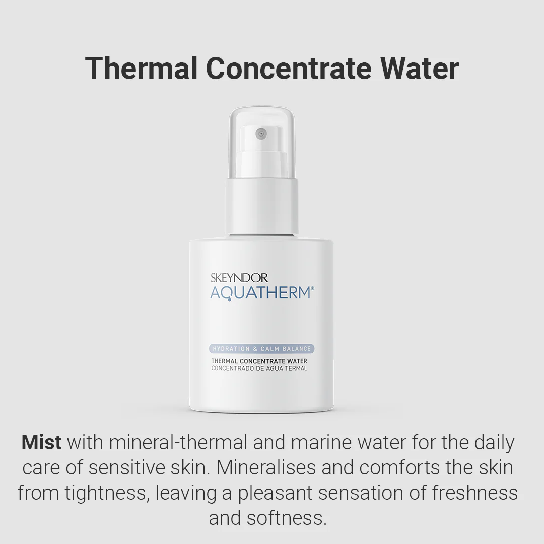 Elevate your skincare ritual with Skeyndor Aquatherm Thermal Concentrate Water for a refreshing and revitalizing experience tailored to the unique needs of sensitive skin.